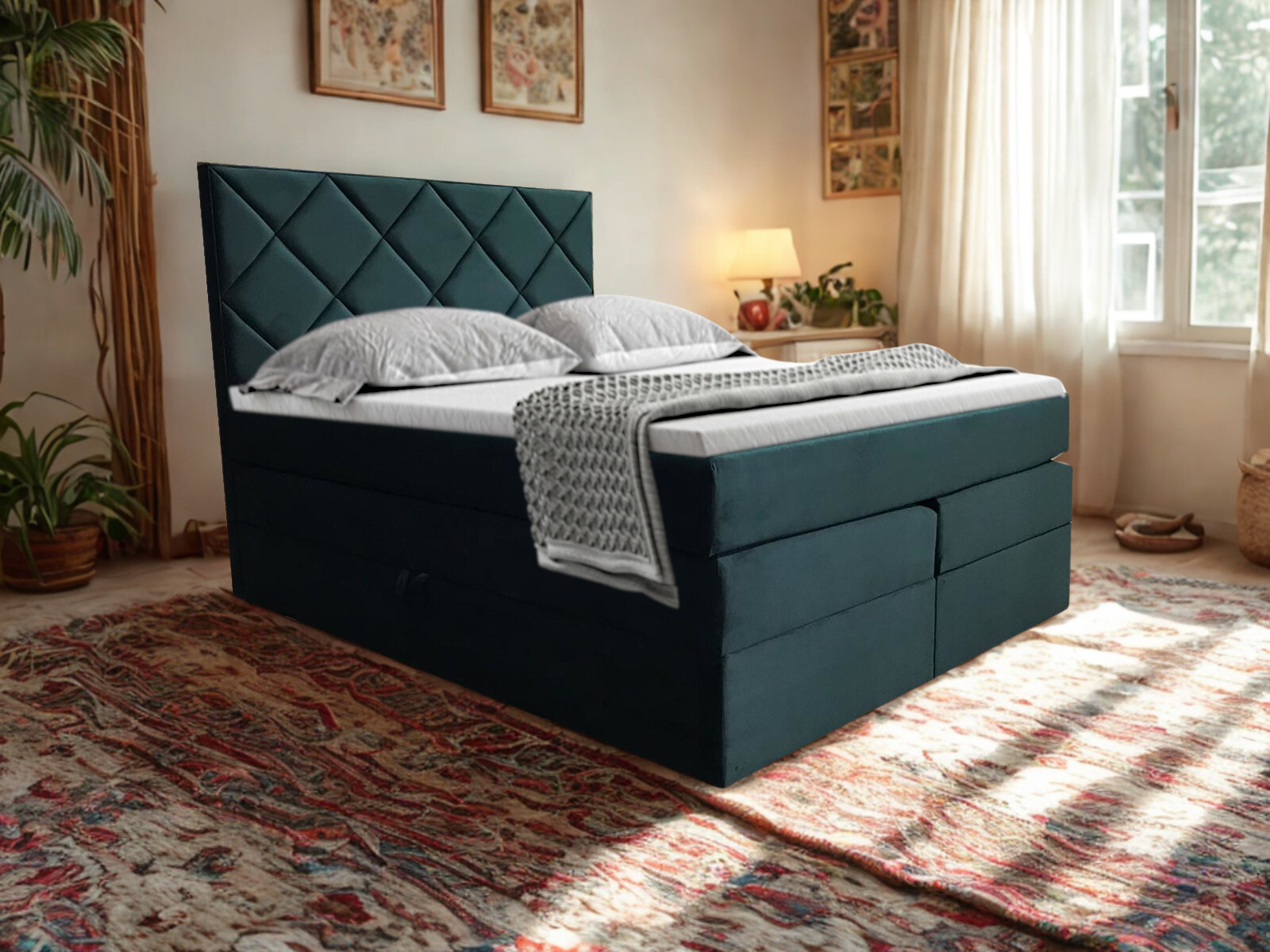 BAHAMA DUO to odpowiedź na poszukiwania prawdziwego komfortu. Dzięki wielowarstwowej konstrukcji i zastosowaniu najwyższej jakości materiałów, zapewnia nie tylko zdrowy, regenerujący sen, ale i estetyczne doznania. Pikowane wezgłowie i wykwintne kolory welurowe sprawiają, że każdy element ekstatycznie przyciąga spojrzenia. Przestronność pojemników na pościel pozwala na zachowanie porządku, a wykończenie z plamoodpornych tkanin to praktyczne udogodnienie, które sprawia, że Twoje marzenia o pięknej sypialni stają się rzeczywistością.
