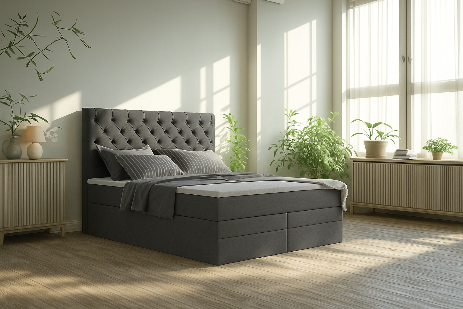 Poczuj luksus snu z łóżkiem kontynentalnym MADERA DUO. Jego elegancki, pikowany zagłówek oraz komfortowa konstrukcja to idealne połączenie stylu i wygody.