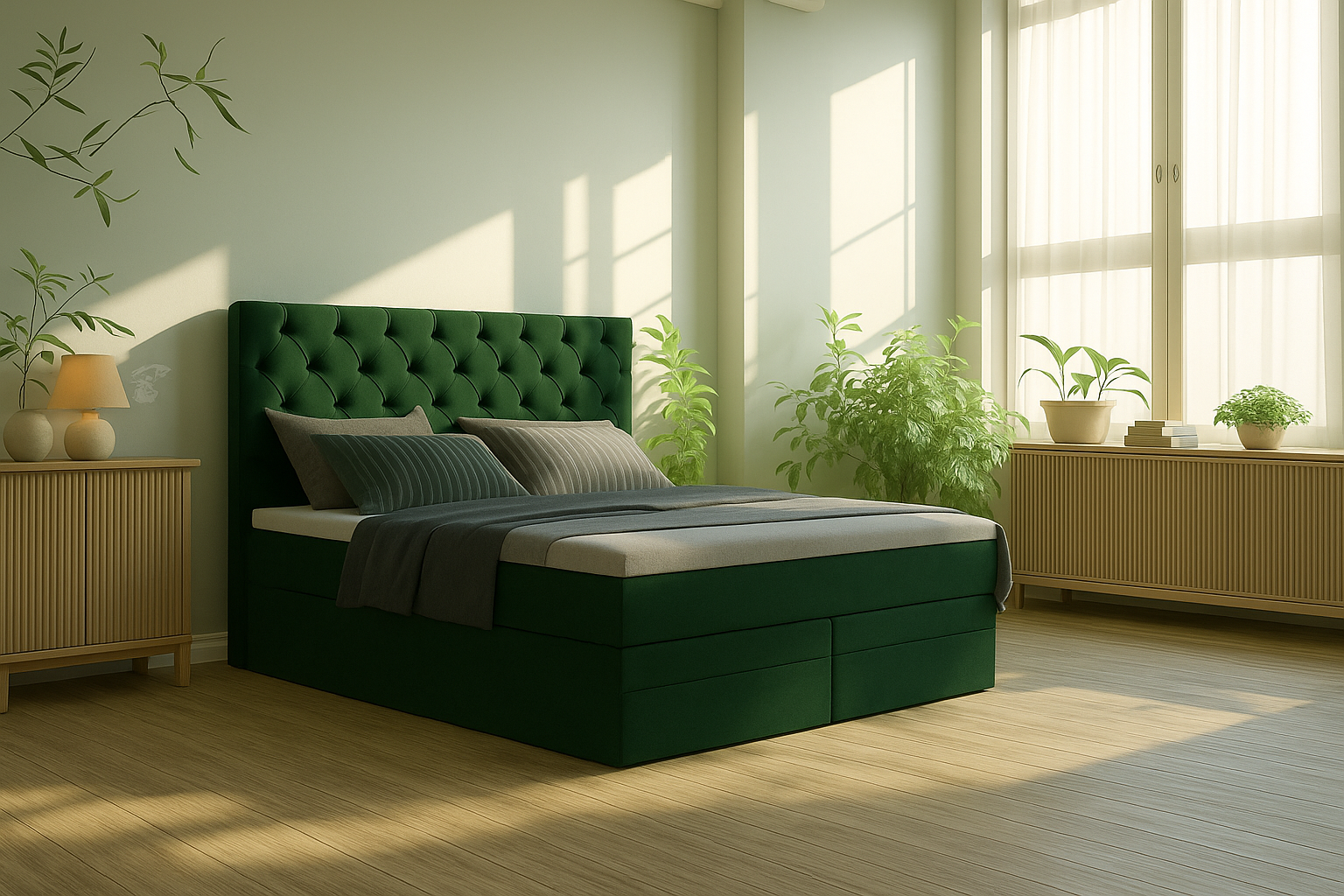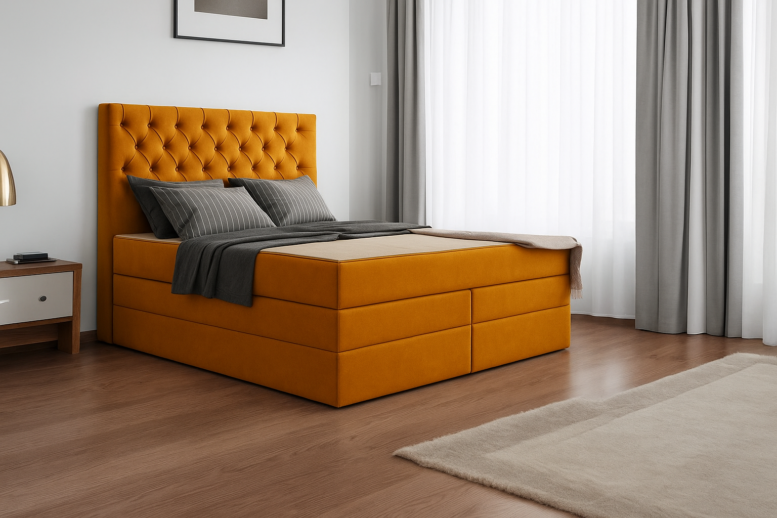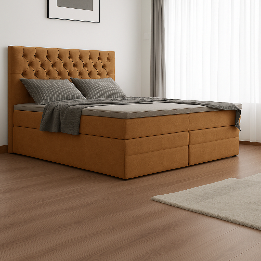 Poczuj się jak w ekskluzywnym hotelu, wprowadzając do swojego wnętrza łóżko kontynentalne MADERA DUO. To nie tylko mebel, to prawdziwe dzieło sztuki, które wniesie do Twojej sypialni elegancję i niepowtarzalny styl. Jego wyjątkowe, pikowane wezgłowie inspirowane kultowym designem „Chesterfield” sprawia, że każdy wieczór staje się przyjemnością, którą będziesz pragnąć powtarzać.
