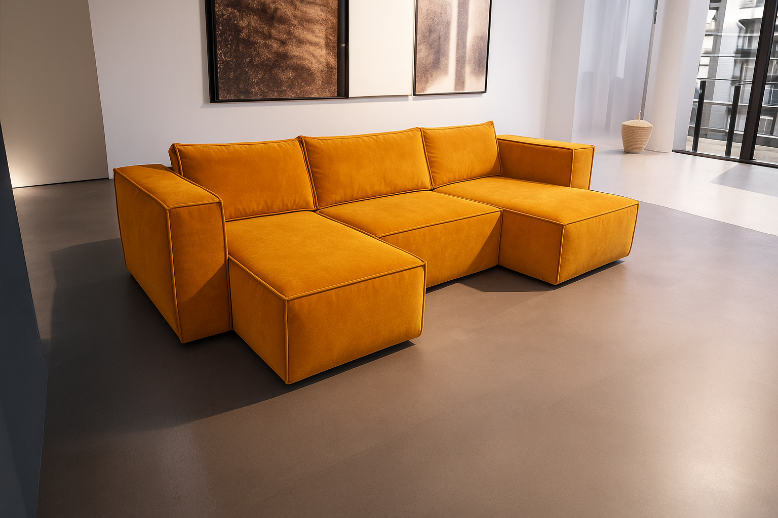 Nowoczesny narożnik o prostym, geometrycznym designie.