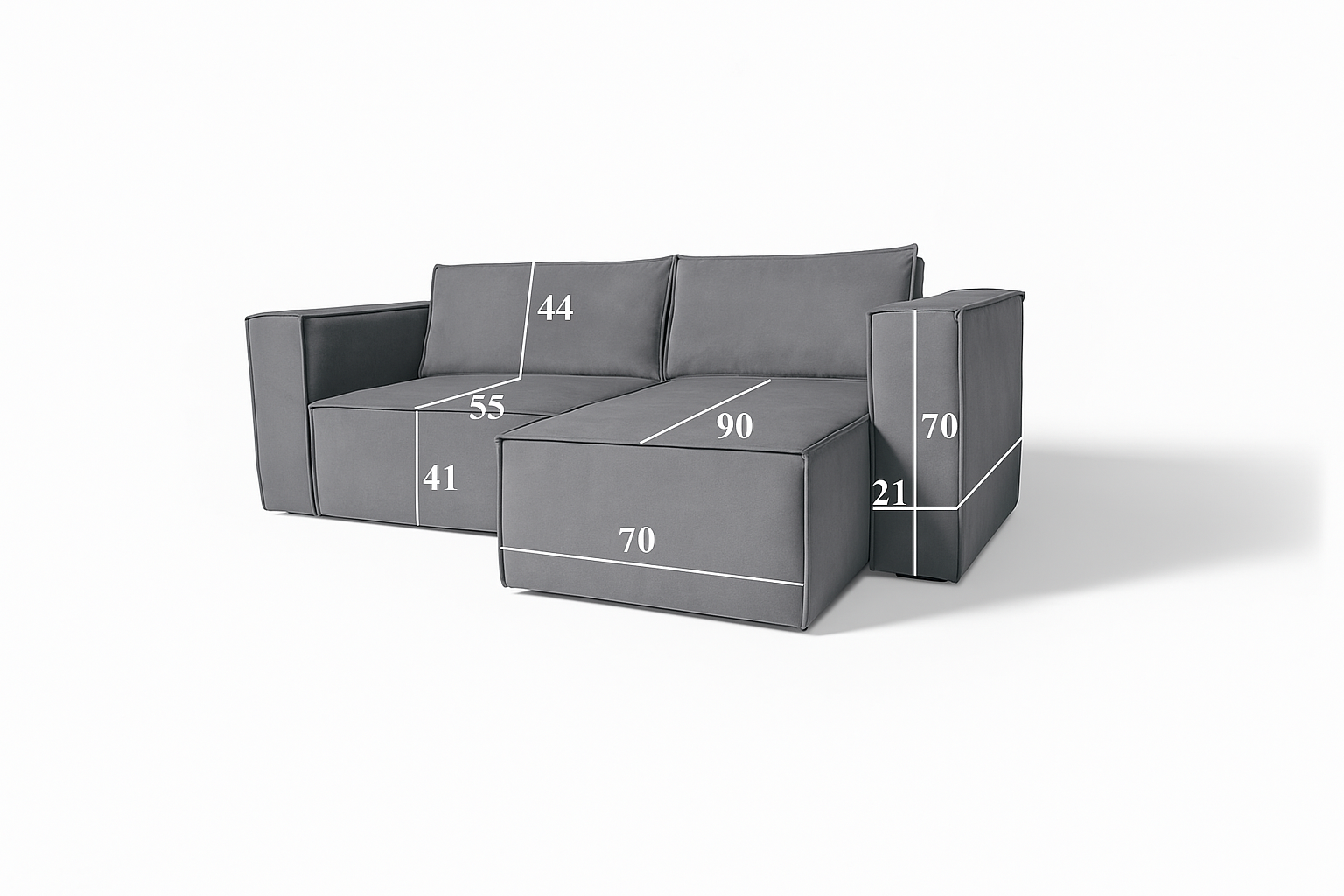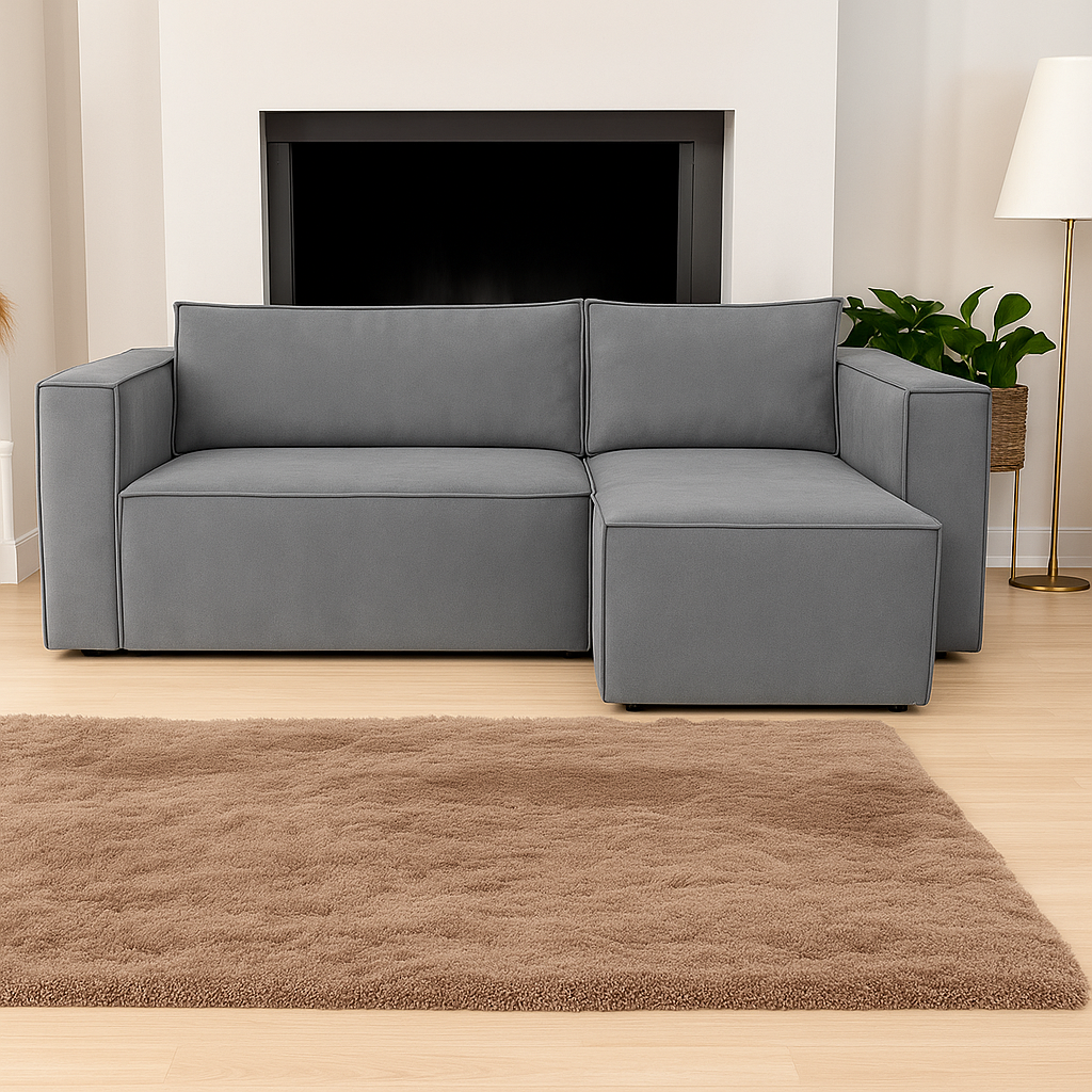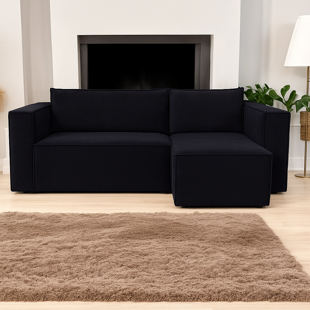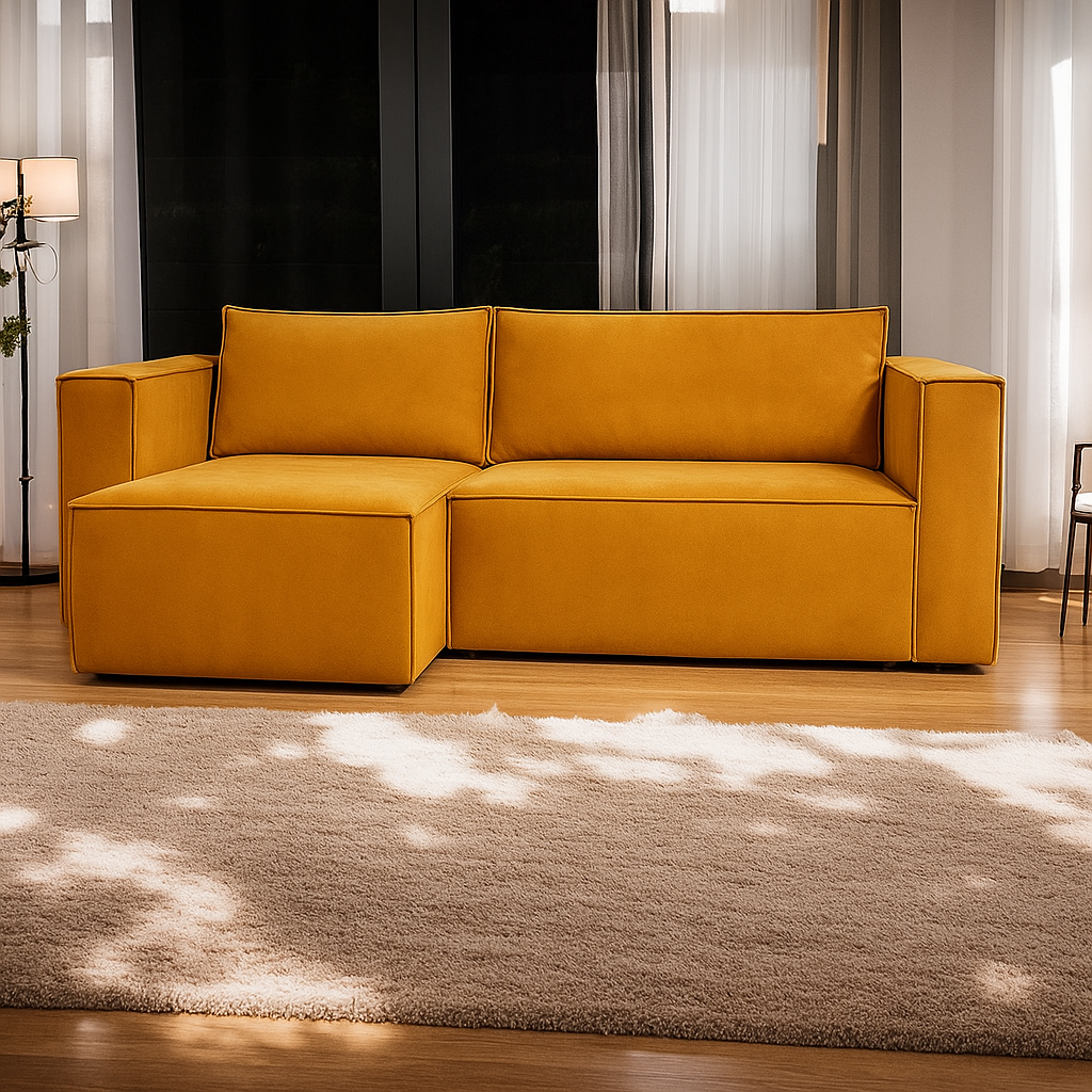 Ta kanapa narożna z leżanką to idealny wybór dla nowoczesnych wnętrz, zarówno małych mieszkań, jak i przestronnych salonów. Niezależnie od tego, czy szukasz sofy do relaksu, czy praktycznego mebla do codziennego użytku, ten model spełni Twoje oczekiwania.