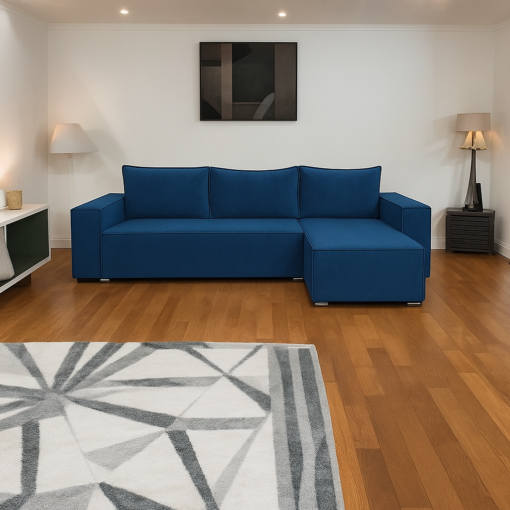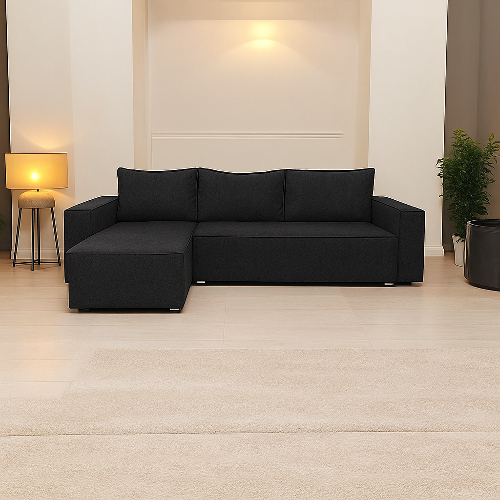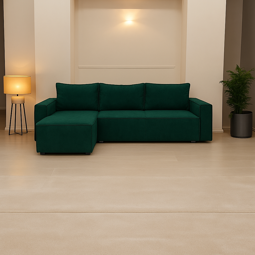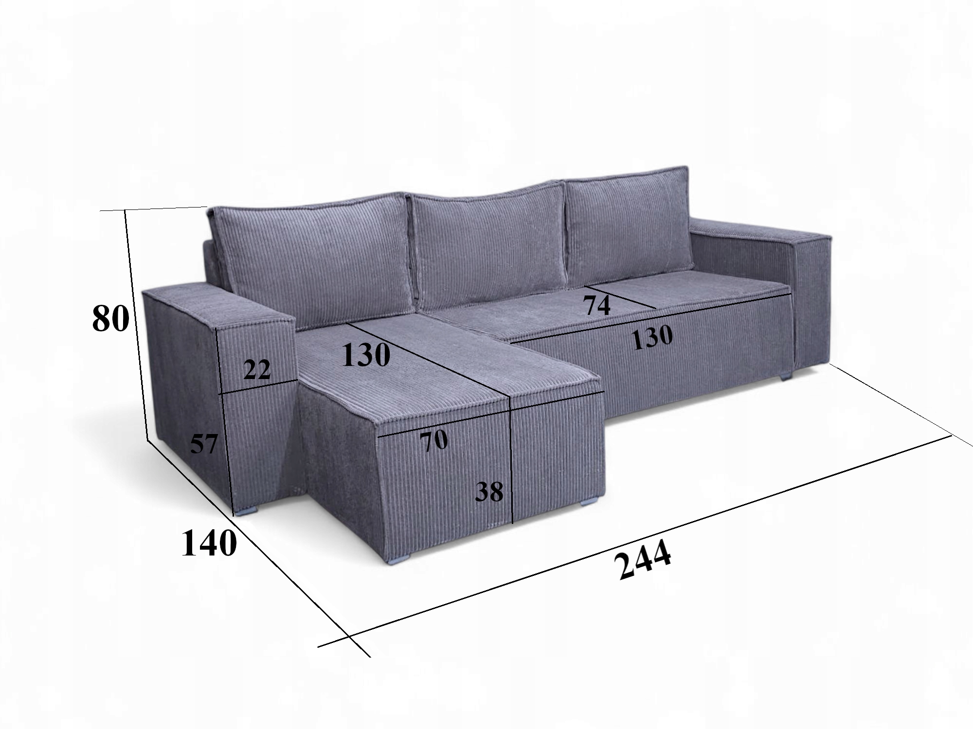 Ta kanapa narożna z leżanką to idealny wybór dla nowoczesnych wnętrz, zarówno małych mieszkań, jak i przestronnych salonów. Niezależnie od tego, czy szukasz sofy do relaksu, czy praktycznego mebla do codziennego użytku, ten model spełni Twoje oczekiwania.
