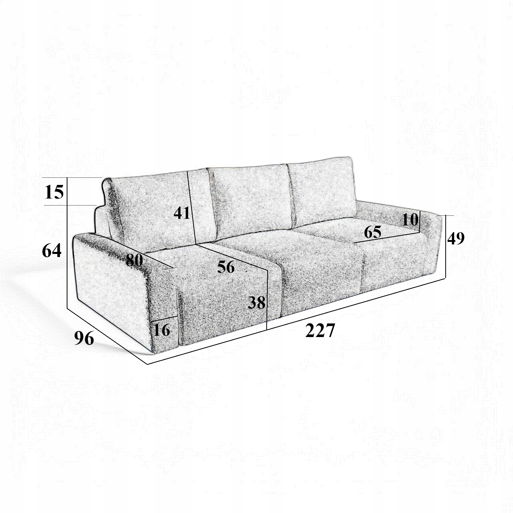 Trzy segmenty siedziskowe i trzy duże oparcia.